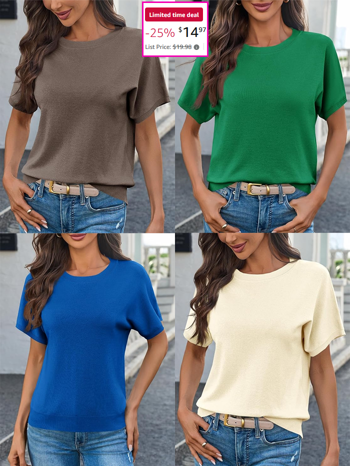 Saodimallsu Short Sleeve Crew Neck Knit Sweater for $14.97 (Reg $19.98)!