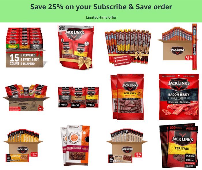 Nice! There’s a 25% off Subscribe and Save coupon available on jerky! Combine it with the 5% or 15% discount for Subscribing, and that’s a whopping 40% off these high protein snacks!