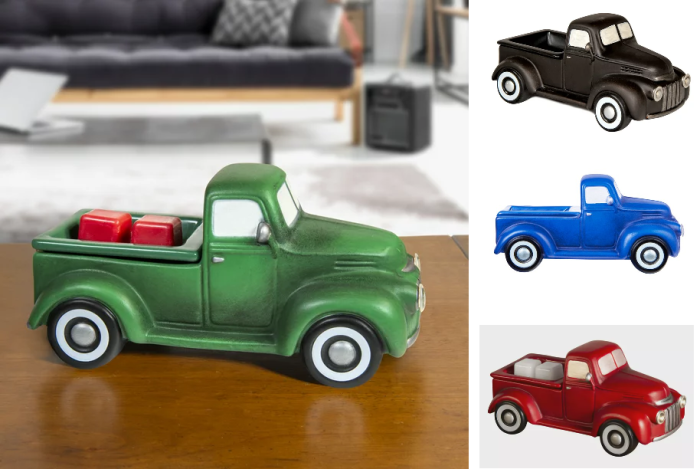 This wax warmer is so cute and even has working headlights! The bed of the vintage truck is an electric hot plate to warm the wax, so there’s no need for a bulb. Just add your favorite scent.