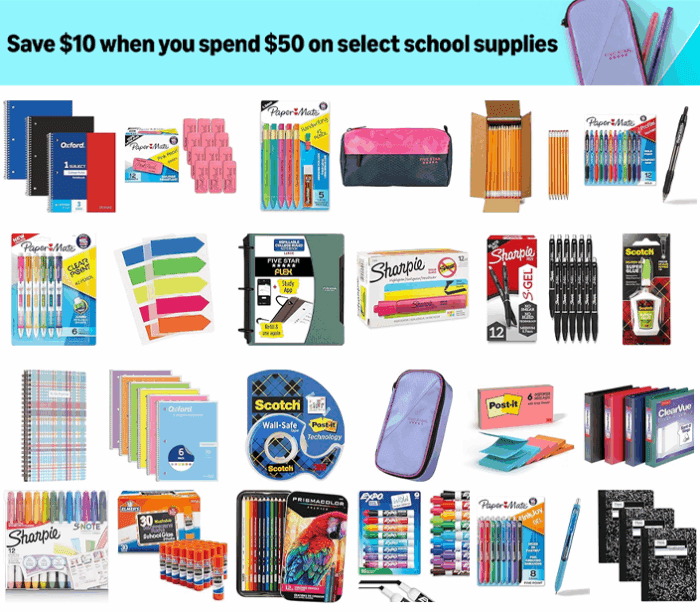 School Supplies: Spend $50, Save $10!