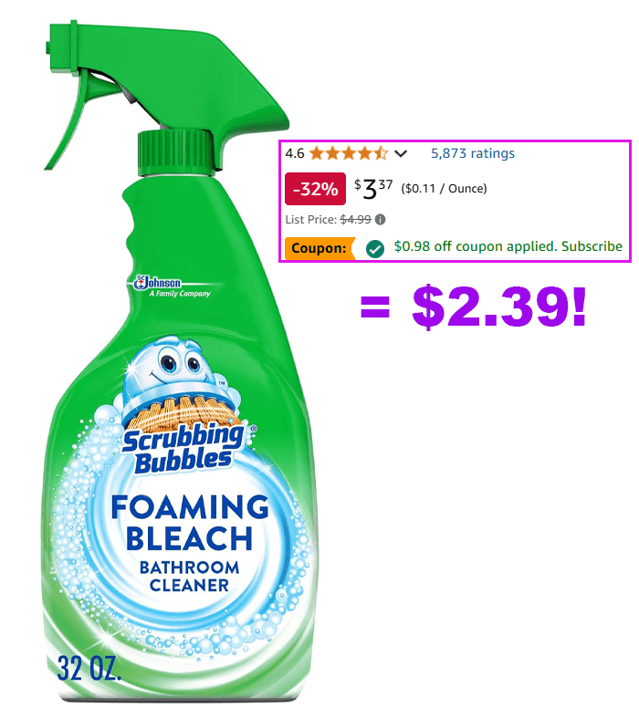 Scrubbing Bubbles Foaming Bleach Bathroom and Shower Cleaner Disinfectant Spray, 32oz for 3.97 (Reg $4.99)!
