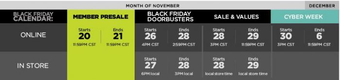Plus, Shop Your Way Members can get to shop the sale early ONLINE. The sale starts on November 20 at 10:59 pm MST and ends on November 21 at 10:59 pm MST.