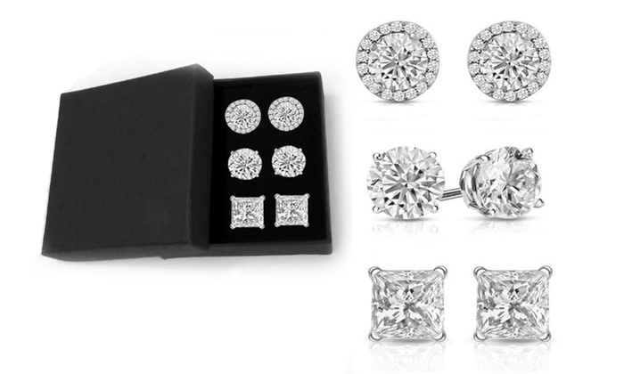 Set of 3 Solid Sterling Silver Stud Set w/ Gift Box made with Swarovski Elements $11.99 (reg $85)