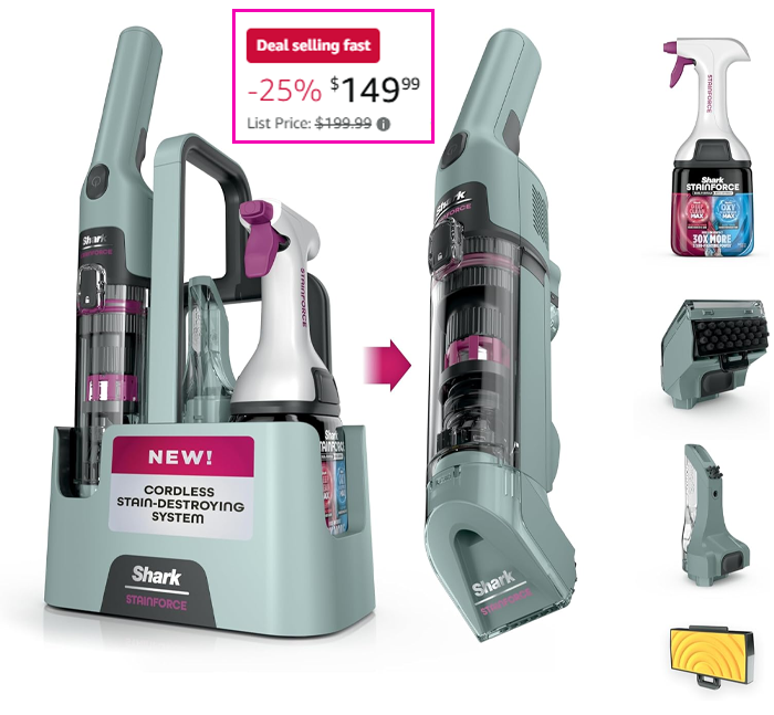 Shark StainForce Cordless Portable Spot, Stain, & Odor Remover for $149.99 (Reg $199.99)!
