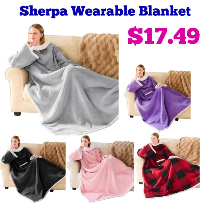 Sherpa Wearable Blanket with Sleeves $13.99 – $17.49 (reg $19.99 – $24.99)