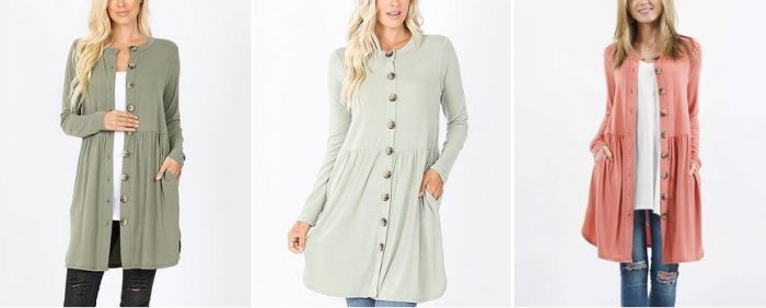This cute cardigan looks adorable both buttoned-up and unbuttoned! Choose from a variety of colors in sizes S-3X.