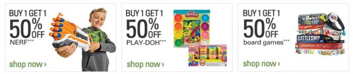 Make sure you check out the Buy 1 Get 50% off sales for Nerf, Play-Doh, and Board Games! You can find some great gifts for Valentine’s Day or Easter.