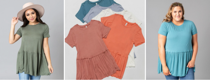 I love these flowy peplum tops! They come in 10 colors. Hurry, colors are selling out in some sizes!