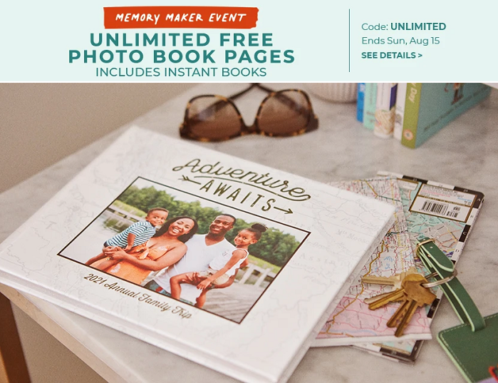 Through August 15, Shutterfly is offering FREE unlimited photo book pages, including their instant books! Use code UNLIMITED to get this offer.
