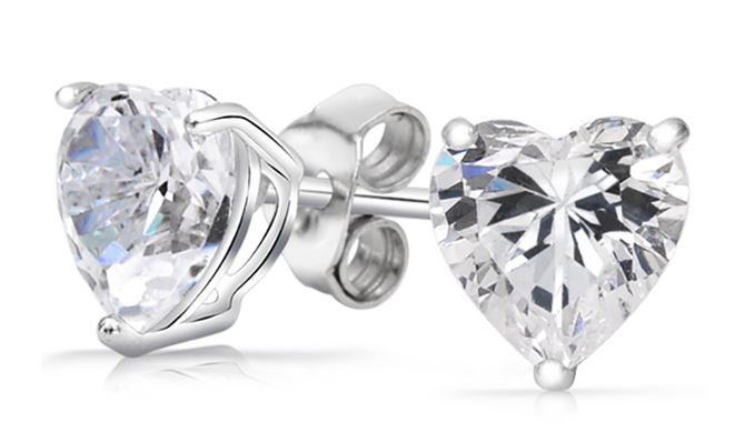 Silver Crystal Heart Stud Earrings for $3.99 + free shipping