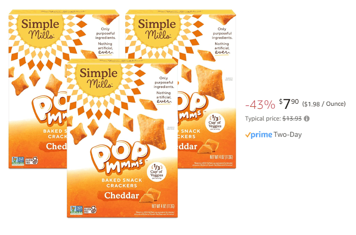 Simple Mills Pop Mmms Cheddar Baked Snack Crackers, 3 Boxes for $7.90 (Reg $13.93)!