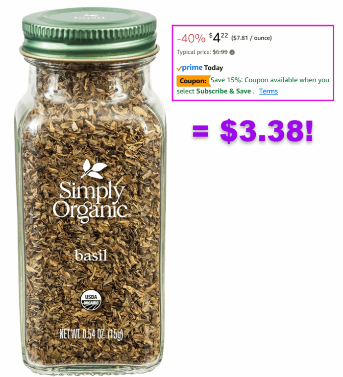Simply Organic Pure Egyptian Basil Leaf, 0.54 Ounce Bottle for $3.38 (Reg $6.99)!