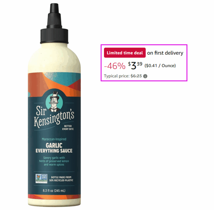 Sir Kensington’s Everything Sauce Garlic Dressing Dip and Drizzle for $3.57 (Reg $6.23)!