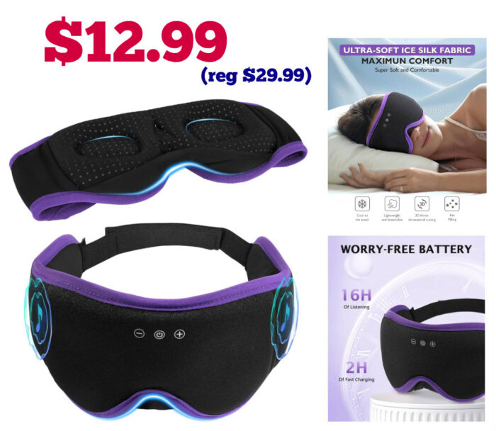 Sleep Mask with Bluetooth Headphones $29.99