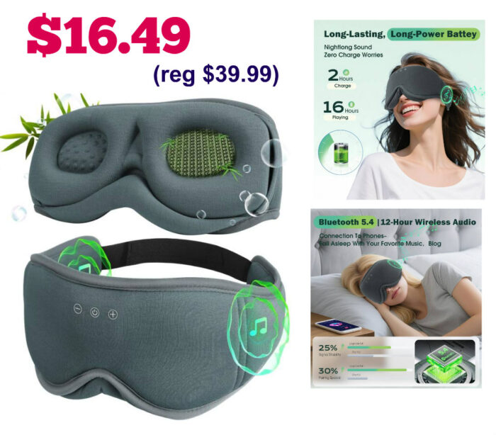Sleep Mask with Bluetooth Headphones $32.99 (reg $39.99)