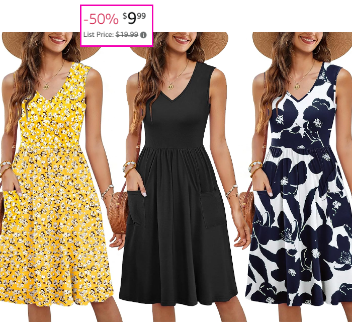 Sleeveless V-Neck Dress with Pockets for $9.99 (Reg $19.99)!
