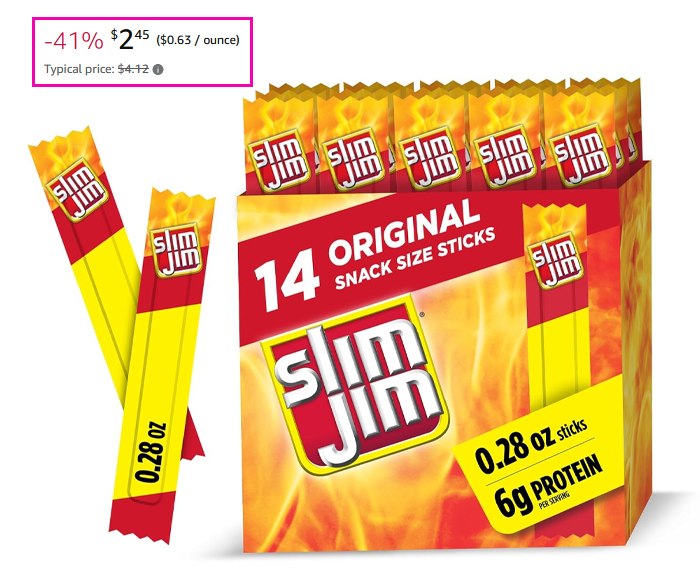 Slim Jim Smoked Meat Sticks, Original Flavor, 0.28 oz. (14 Count) for $2.45 (Reg $4.12)