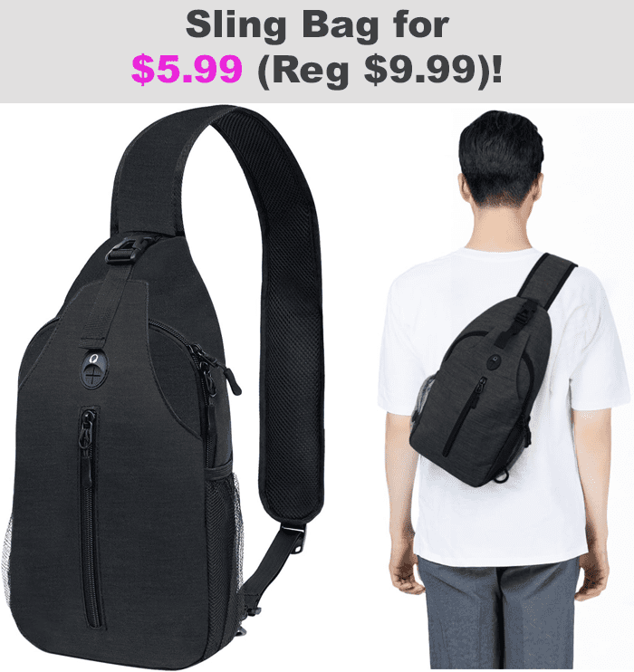 This sling bag can hold a lot! I love that it has pouches on the side for things like a water bottle and sunscreen or umbrella.