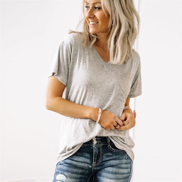 A slouchy style lightweight tee with all the comfy clothing vibes. Pocket detail, v-neck, and ultra-soft touch are a few things that make this the tee you’ll want to wear every day!