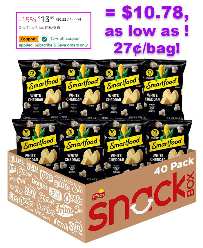 Smartfood Popcorn, White Cheddar, 0.625 Ounce (Pack of 40) for $15.40