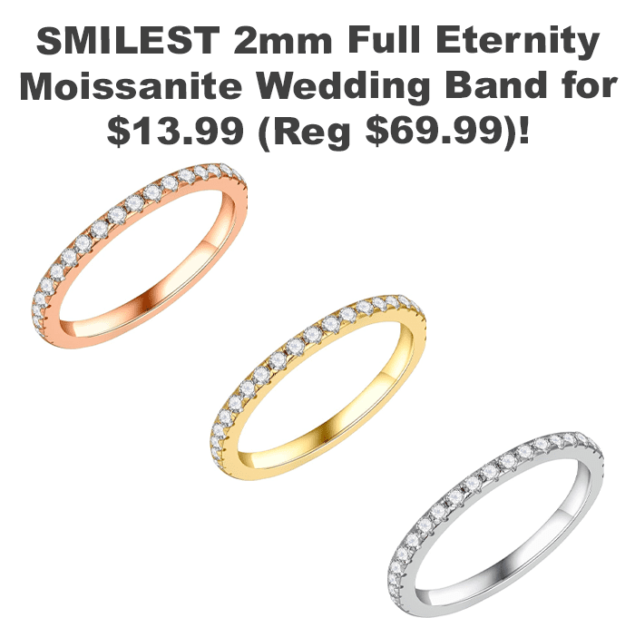 SMILEST 2mm Full Eternity Moissanite Wedding Band for $69.99