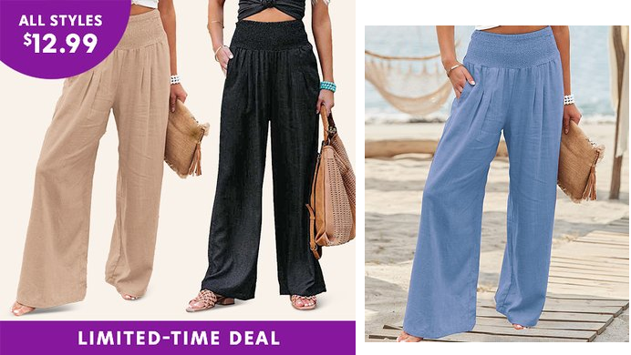 Smocked-Waist Wide-Leg Pants for $12.99!
