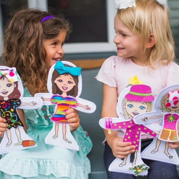 - Each snap doll “paper” doll set includes the base doll, 3 dresses and 8 accessories.