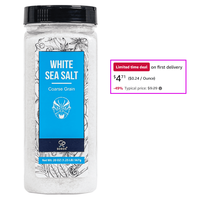 Soeos White Sea Salt, Coarse Grain, 20 Oz for $5.54 (Reg $9.29)