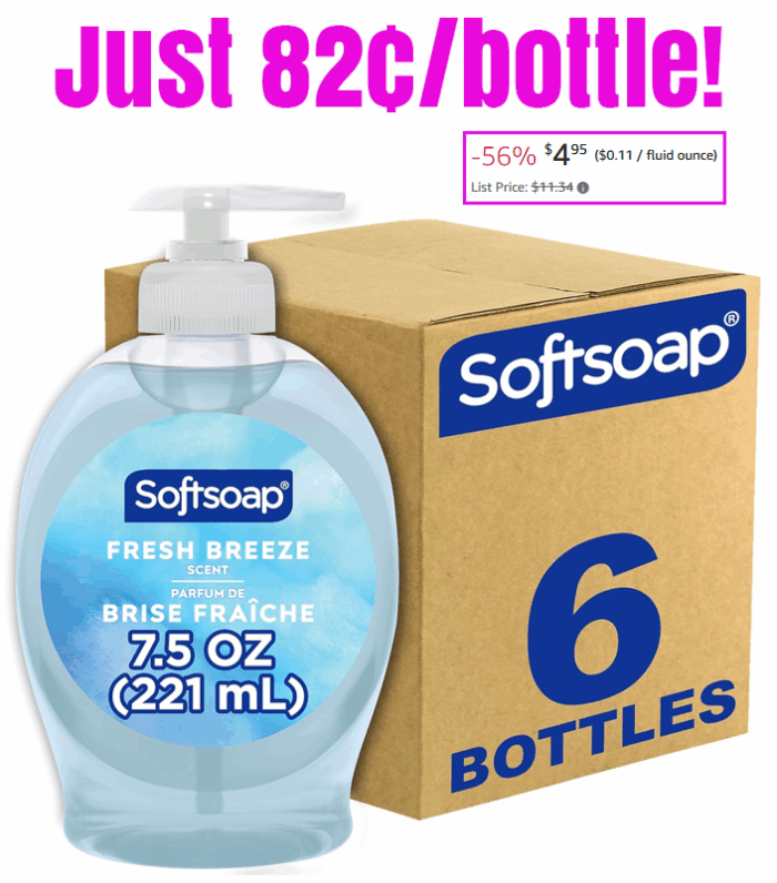 Softsoap Liquid Hand Soap, Fresh Breeze – 7.5 Fl Oz (Pack of 6) for $5.82 (Reg $11.34)