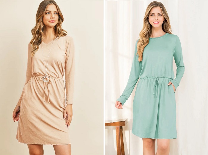 Solid Long Sleeve Cinch Waist Pocket Dress for $9.99 Shipped (Reg. $39.99) *S-3X*
