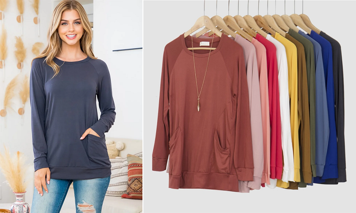 Solid Long Sleeve Side Pocket Top for $14.99 + Free Shipping (Reg $37.99)!