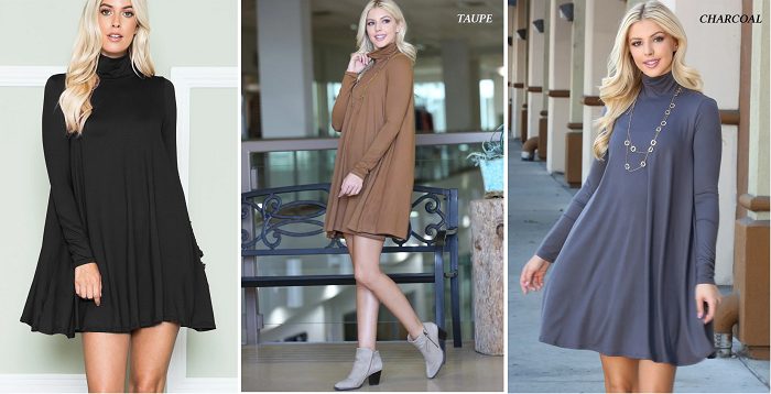 Solid Turtleneck Tunic Dress for $16.99 + Free Shipping (Reg $34.99)!