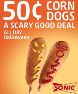 Who doesn’t love a cheap and easy meal on a super busy night! Sonic is again offering $0.50 corn dogs all day long on Halloween.