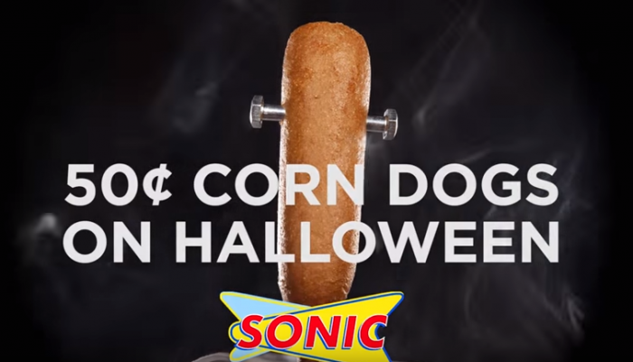 Monday is going to be a busy day. No time to worry about lunch? No problem! Sonic is offering 50¢ Corn Dogs on Halloween!