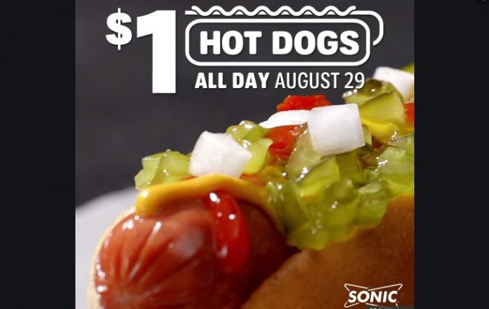Sonic: Today Thursday, August 29th $1 HOT DOGS!