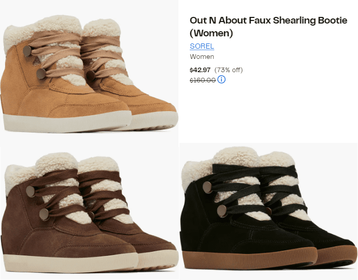 Sorel Out N About Faux Shearling Booties for $42.97 (Reg $160)!