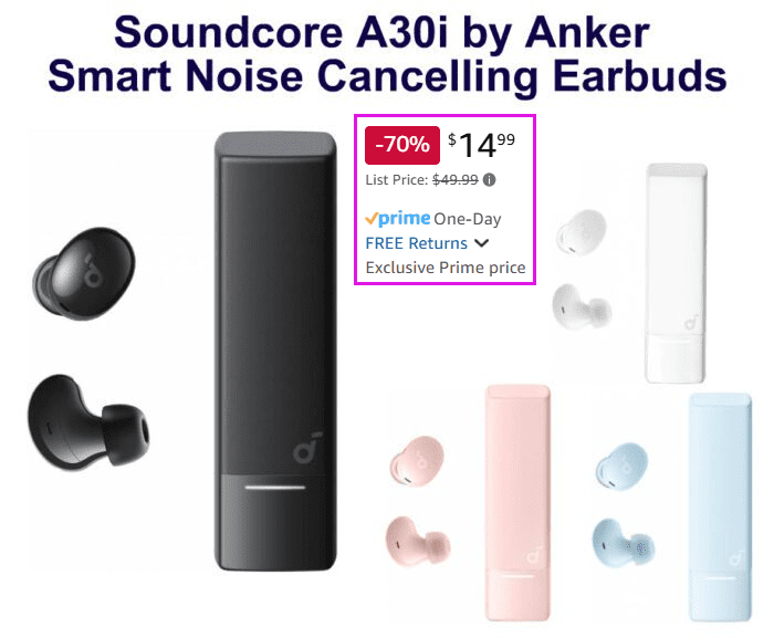 Soundcore A30i by Anker, Smart Noise Cancelling Earbuds for $14.99 (reg $49.99)