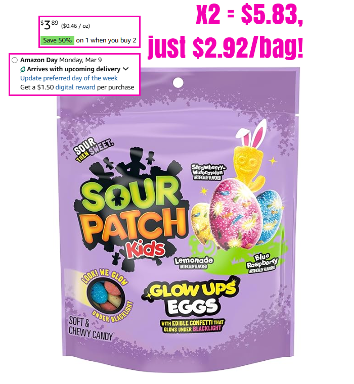 SOUR PATCH KIDS Glow Ups Eggs Soft & Chewy Candy, 8.4 oz for $2.92 Each (Reg $3.89)!