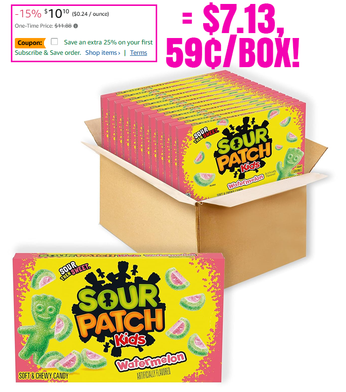 SOUR PATCH KIDS Watermelon 12 – 3.5 oz Boxes for $11.88