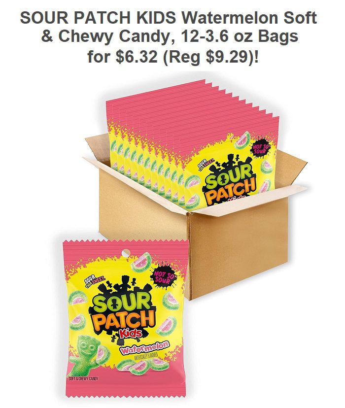 SOUR PATCH KIDS Watermelon Soft & Chewy Candy, 12-3.6 oz Bags for $7.43 (Reg $9.29)!
