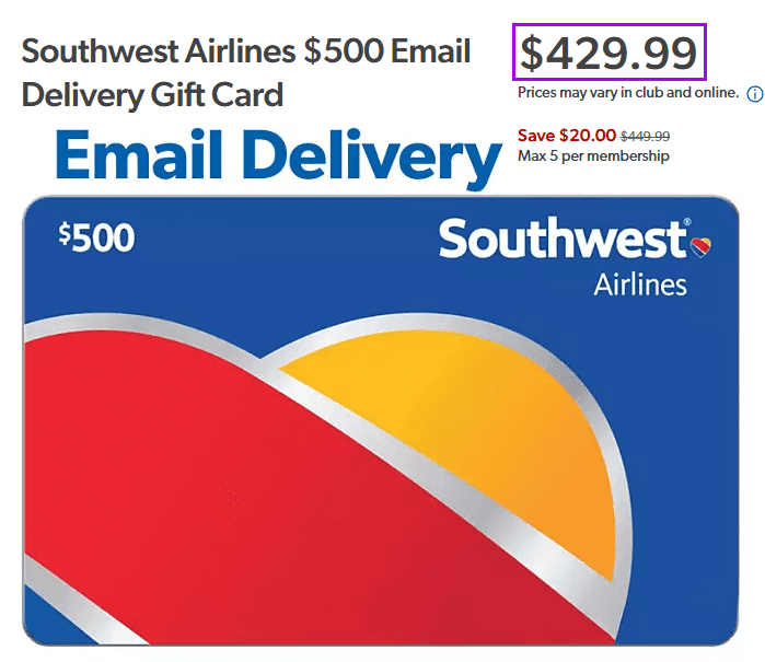 Right now you can get a $500 Email Delivery Southwest Airlines Gift Card for just $429.99!