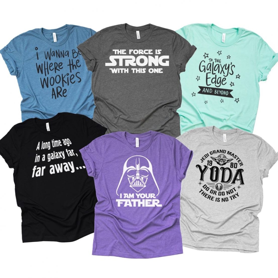 Hopefully, we’ll be back to vacationing at Star Wars: Galaxy’s Edge at Disneyland soon, but even if we aren’t, these are great tees for any Star Wars fan!