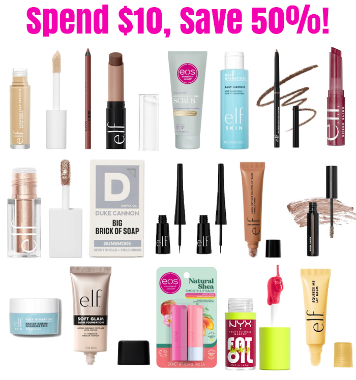 Whoa! Check out this awesome promo on a variety of beauty products from e.l.f., NYX, eos, and a few other brands! There are a few other random items on the promo, too!
