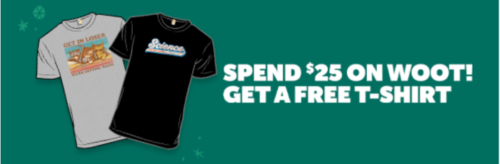 Spend $25 on Woot! and get a coupon for a free shirt!