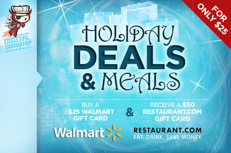 I love these deals from Eversave they are such great deals! For $25 you can get a $25 Walmart Gift card and a $50 Restaurant.com Gift Card