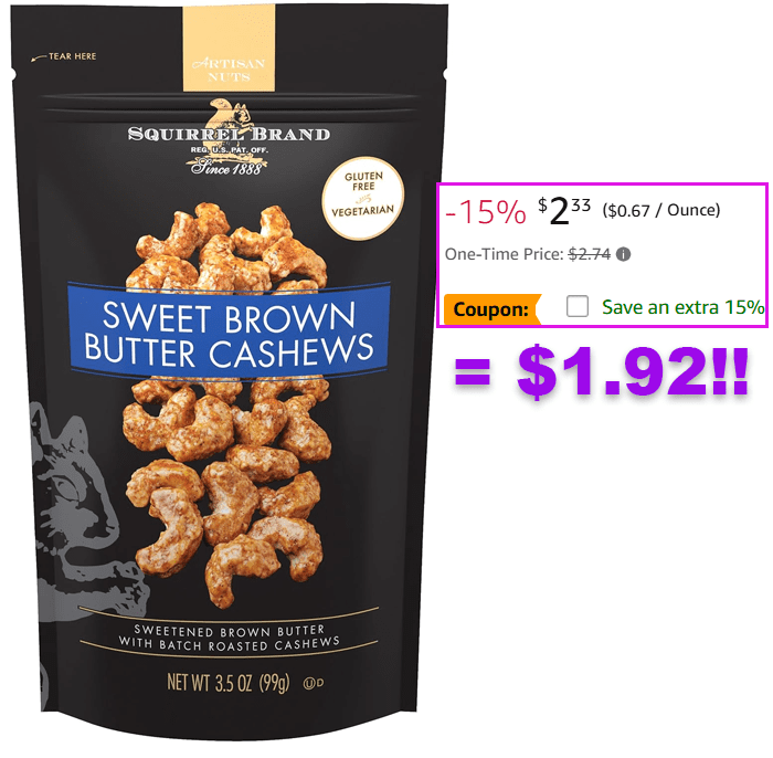 Squirrel Brand Sweet Brown Butter Cashews for $2.74