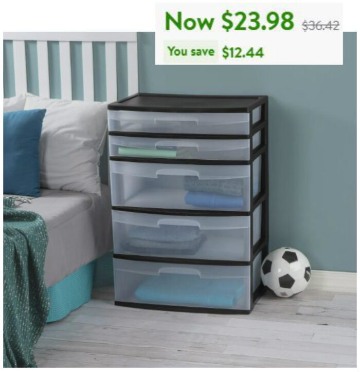 Sterilite Plastic 5 Drawer Wide Storage Tower $23.98 (reg $36.42)
