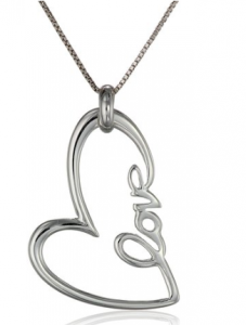 - Sterling silver necklace featuring angled heart pendant with script “love” message