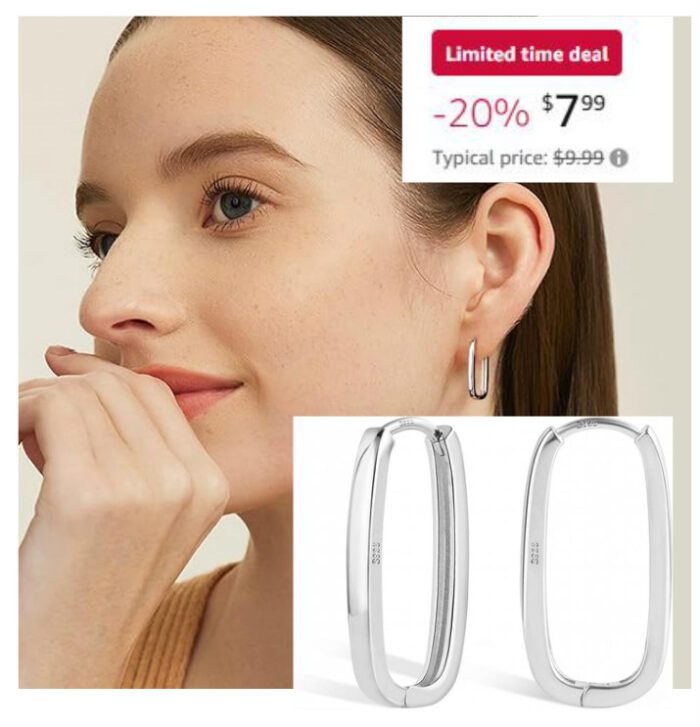 Sterling Silver or Gold Rectangle Hoop Earrings $7.99 (reg $9.99)