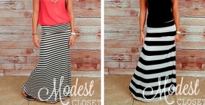 Choose from either large or small black and white stripes in this VeryJane deal for $19.99 Maxi Skirts. Both are available in small, medium, or large, but the large stripe runs a bit larger than the small stripe.